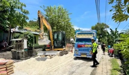 BERITA ROTE NDAO Kawal Perbaikan Jalan di Letelangga, Sat Lantas Polres Rote Ndao Terapkan Sistem Buka Tutup